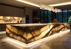 Rumford Stone offers an innovative backlighting service for countertops, creating a captivating and unique ambiance for any space. By placing light panels behind translucent materials, the countertop glows with a mild translucency, transforming its appearance and enhancing the overall aesthetic. Elevate your interior design with Rumford Stone’s expertly crafted backlit countertops.