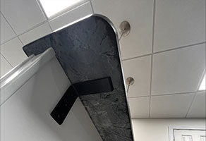 Enhance the stability and elegance of your countertops with our Ironman support brackets. Choose from flat brackets for discreet support or right-angle brackets for robust structural reinforcement. Ideal for various overhangs, these brackets are essential for ensuring the longevity and safety of your installation. Our team of experts will review the ideal placement during templating, guiding you through every step to ensure your Rumford Stone countertops are not only stunning but securely supported.