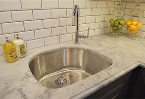 An apron farm style or undermount stone slab sink from Rumford Stone will beautify your design and set your kitchen apart from the rest. At Rumford Stone we manufacture sinks in-house to match your countertop stone selection. Our sinks are custom fit to your specifications and adhered with the finest adhesives, guaranteed to never leak or deteriorate. The bottoms of all our sinks are milled to create pitch to the drain. Ask our showroom personnel for more information.
